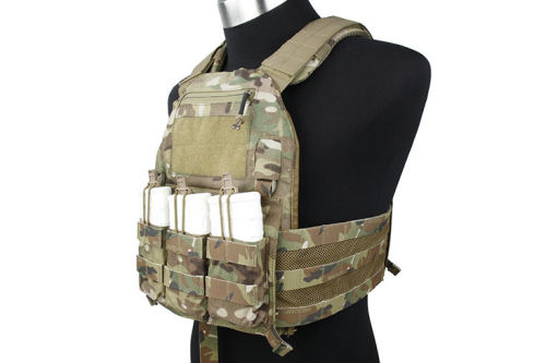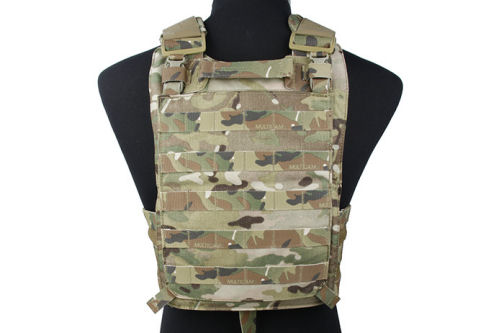 This TMC MP20 Plate Carrier is made of high quality Cordura fabric. It is low profile plate carrier with fast-clip front and back panel. It has removable triple M4 panel and Molle back panel. It also has removable padded shoulder straps and adjustable modular mesh rib cage cummerbund. The zipper admin pocket at the front and reinforced drag handle at the back.