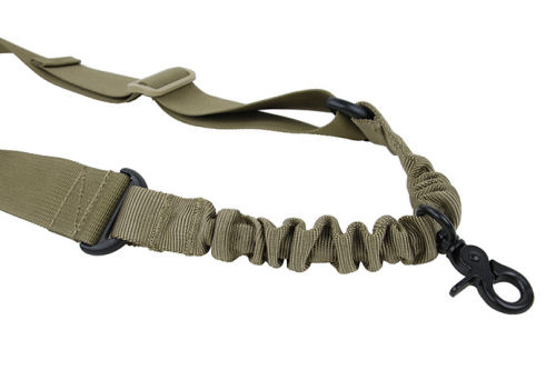 This One Point Bungee Sling is a single point bungee sling made of a nylon webbing, and provides an affordable option for a single point sling. This sling is easily adjustable by use of the pull tab for quick adjustment, and has a single QD sling hook for easy removal and weapon manipulation. Swivel clasp prevents your sling from becoming tangled during movement.