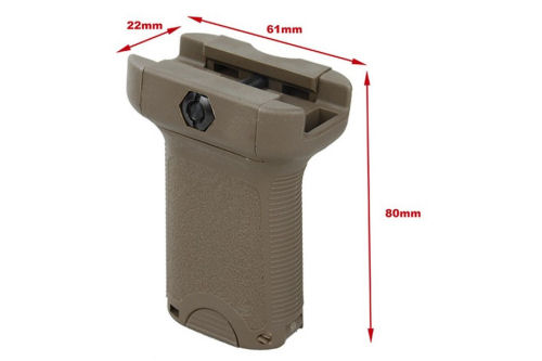 This TMC Vertical Picatinny Short Grip is made of high quality nylon material. It has low-profile length for increased mobility and decreased snag factor. The forward angle increases the rigidity of the forearm, while providing a more natural wrist angle. It also can be mounted in reverse angle to increase control when grabbing handguard and grip. It features flat sides give better yaw control to the shooter during firing and non-firing manipulations.